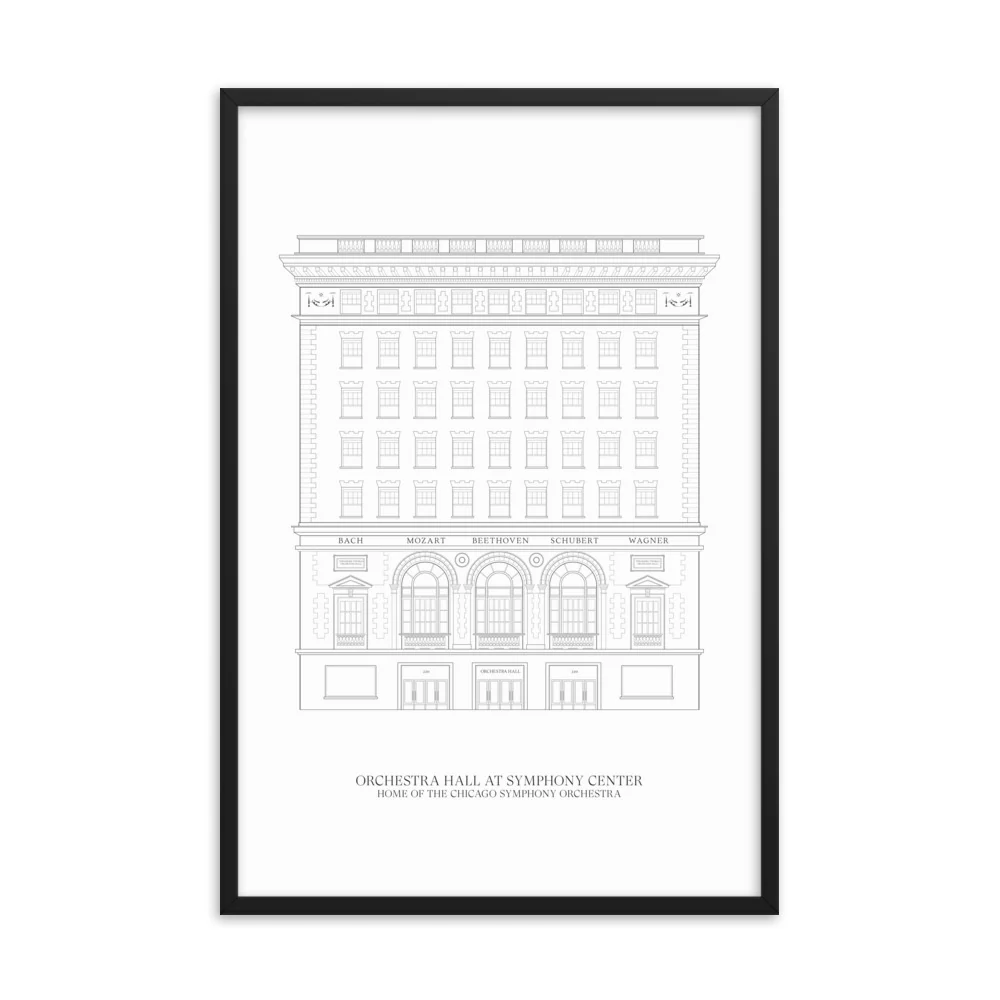 In this exclusive collaboration between the Chicago Symphony Orchestra and Opus Haus, you can take the iconic architecture of Orchestra Hall home. Printed on museum-quality matte paper, this poster will add a wonderful, music-themed accent to any room. Framed in a 0.75" thick wooden frame with an acrylite front protector and hanging hardware.